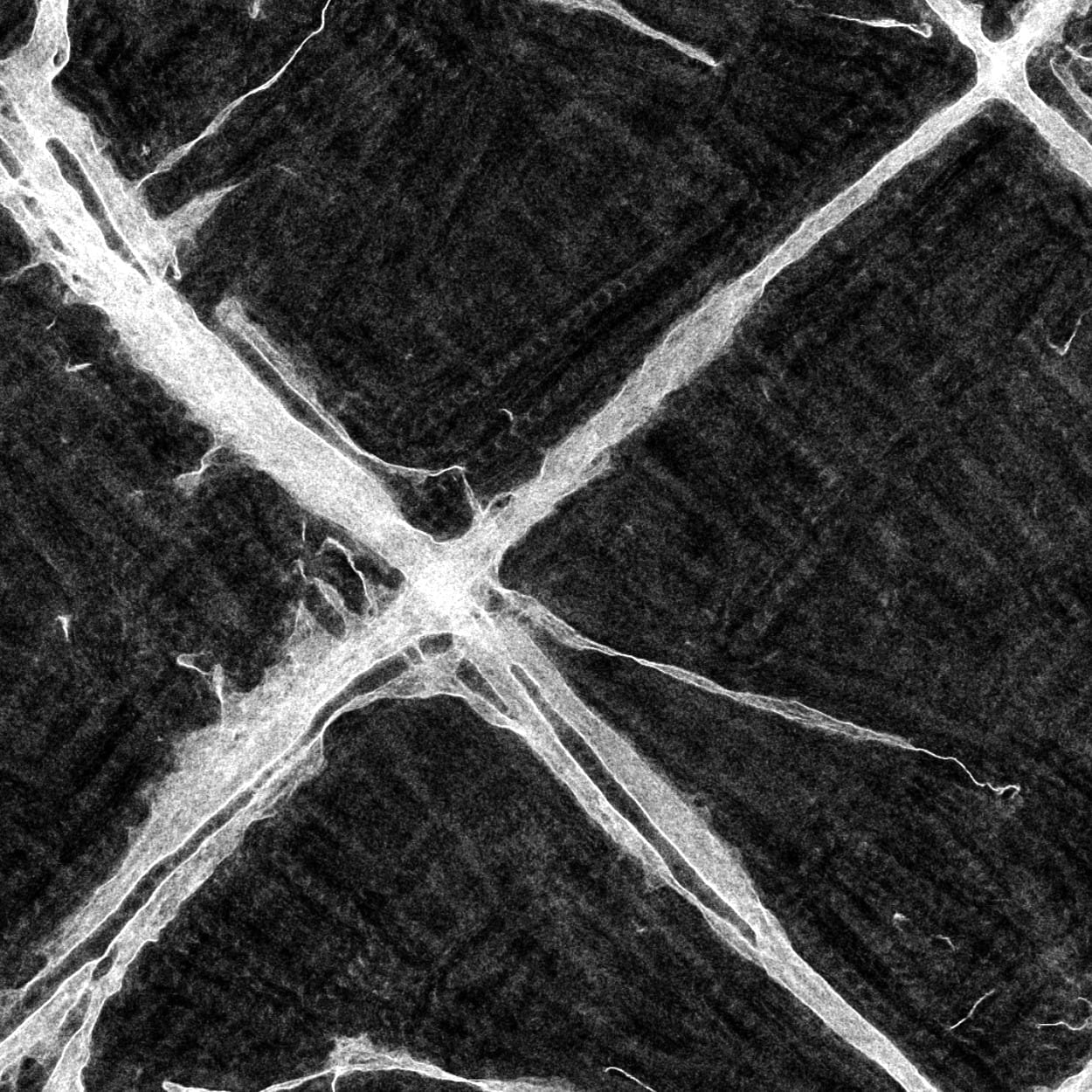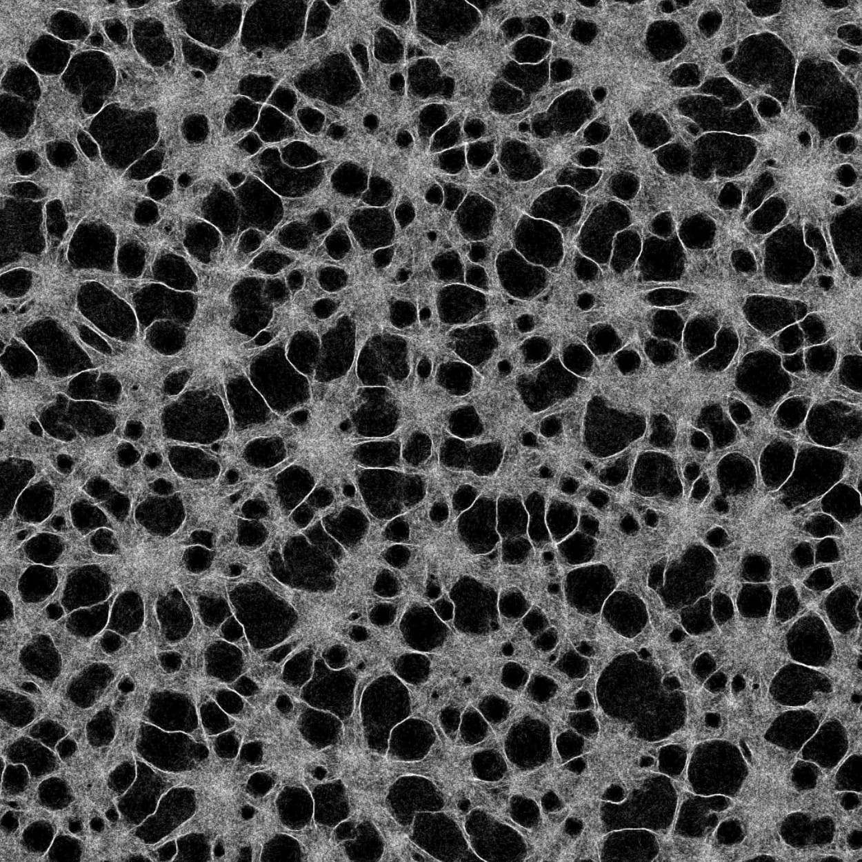 Physarum polycephalum (the “many-headed slime”) is a plasmodial, single-celled organism which grows outward from a single point as it searches for food. During the experiment the slime mould was fed oats, placed in small piles representing Japanese cities. Once the food sources are located, many of the branches sent out from the center die back, leaving only the most efficient routes between food sources, as can be seen in the final frame (below). Other researchers have run similar experiments with the US and Spanish transport systems and found that there too the slime recreates the existing system.