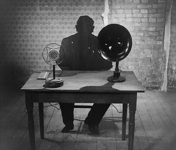 (1) Father Charles Coughlin - known as America's first Radio Priest. A populist preacher who ended his career voicing pro-Nazi opinions that lead to his investigation by the FBI (2) A still from the final scene of Fritz Lang's film The Testament of Dr Mabuse - a curtain is thrown back to reveal a loudspeaker, broadcasting words directly from the mind of Dr Mabuse, who was held in an insane asylum. (3) A still from Frank Capra's Meet John Doe, where a homeless man hired by a journalist to cover up a forgery accidentally becomes a hero (4) A still from Charlie Chaplin's The Great Dictator which bravely ridiculed Hitler's use of the radio.